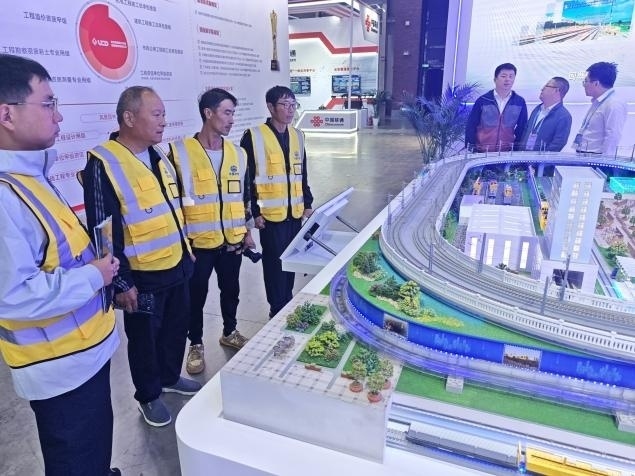 在智慧展示区,来自四川的信号工小王盯着智慧建造展示沙盘及智慧工地系统看了半天:“原来技术已经这么先进,就像电影大片里面演的一样。”
